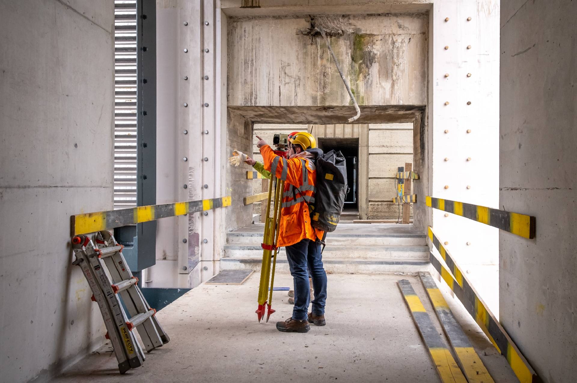 Descriptif : Nivellements de précision en vue de réaliser la calibration des vannes du pont-barrage de Monsin (Liège).